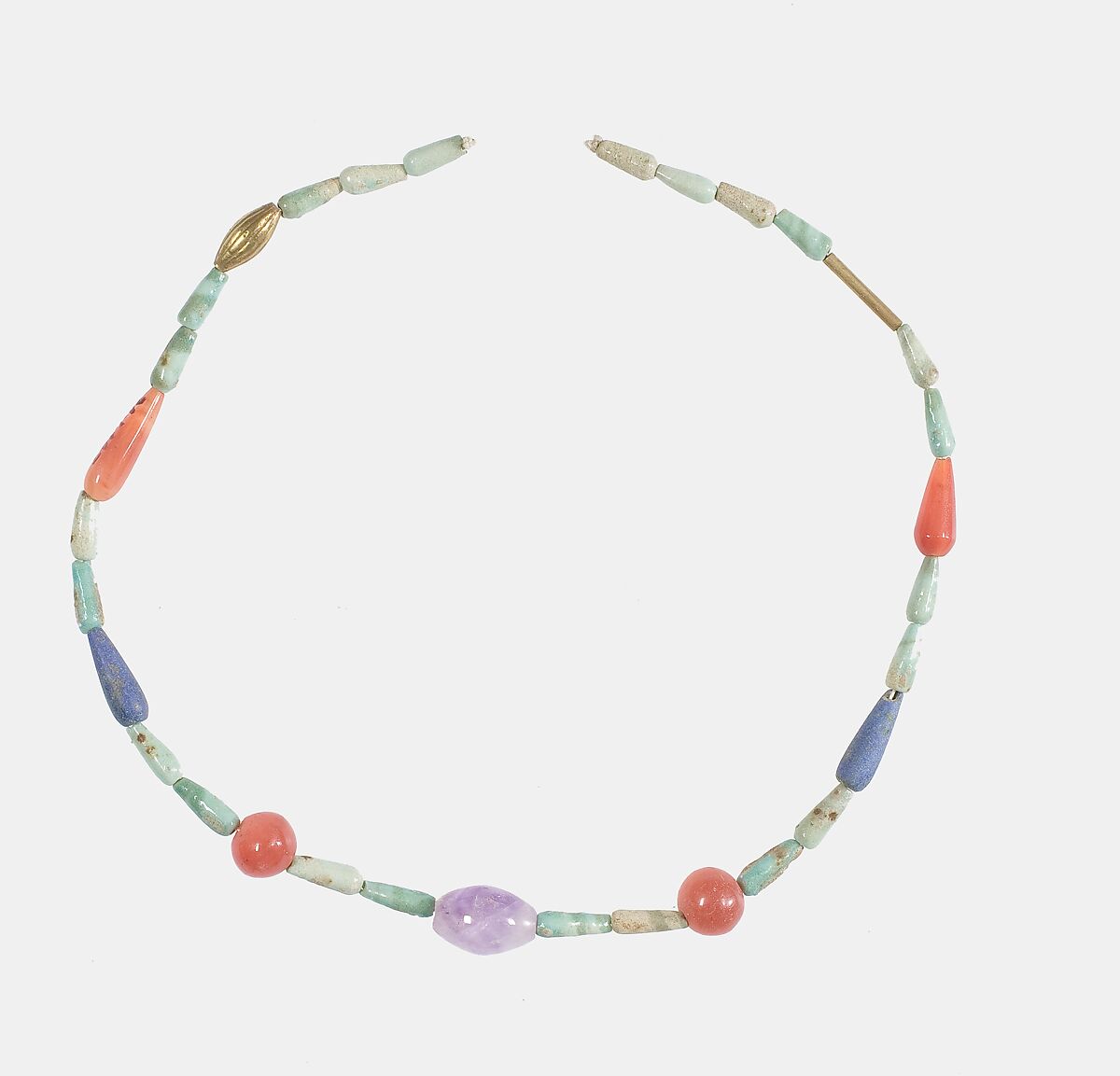 - Medium: Amethyst, carnelian, gold, green faience, lapis-lazuli