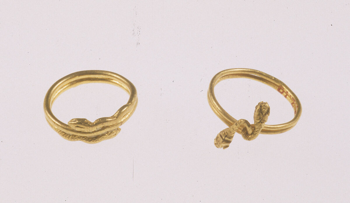 Snake jewelry was not limited to Egypt in the Ptolemaic and Roman Periods, and, in fact, was not a traditional Egyptian sort of jewelry before the Ptolemaic Period. Bracelets with animals, including snakes, appeared in Western Asia from about the eighth century BC, and spread to Greece in the fifth century BC, and came to Egypt mainly with the Ptolemaic Dynasty. In Greek culture there were certainly healing associations with snakes, but there may have been other assocations, too.