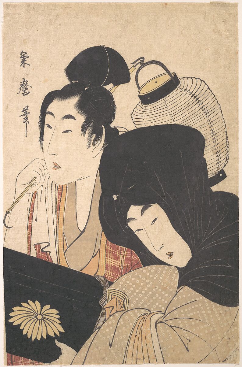 - Title: Young Woman at Night accompanied by a Servant Carrying a Lantern and a Shamisen Box