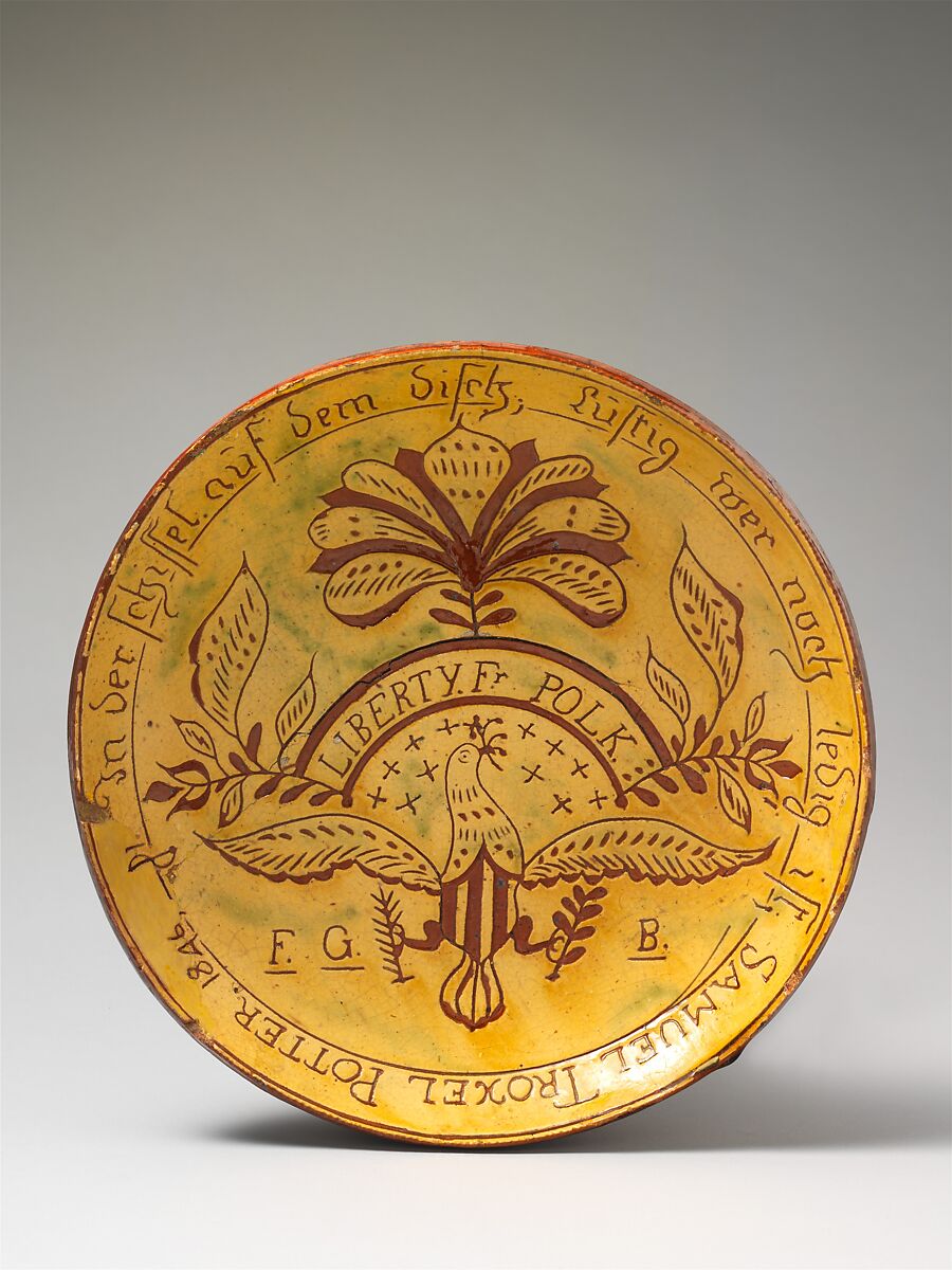 The eagle under a political banner was a common motif for Troxel, who designed a number of plates commemorating electoral victories, including this one for James Knox Polk, the eleventh president of the United States (1845–49).
