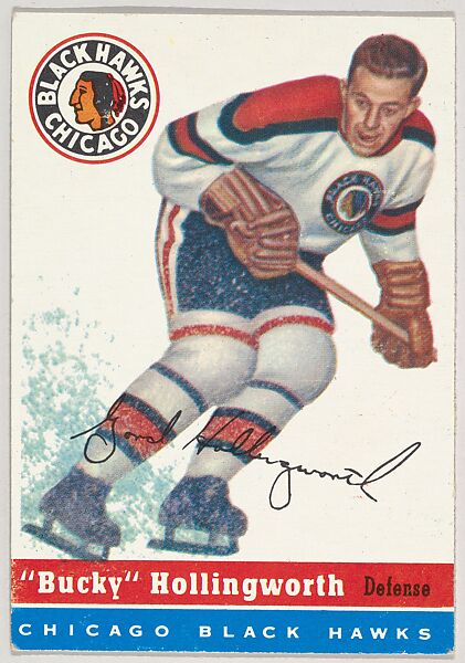 - Title: Card Number 12, "Bucky" Hollingworth, Defense, Chicago Black Hawks, from the Topps Hockey series (R412) issued by Topps Chewing Gum Company
