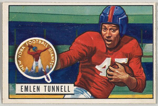 - Title: Card Number 91, Emlen Tunnell, Halfback, New York Giants, from the Bowman Football series (R407-3) issued by Bowman Gum