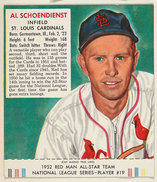 - Title: Al Schoendienst, from the Red Man All-Star Team series (T232), issued by Red Man Chewing Tobacco