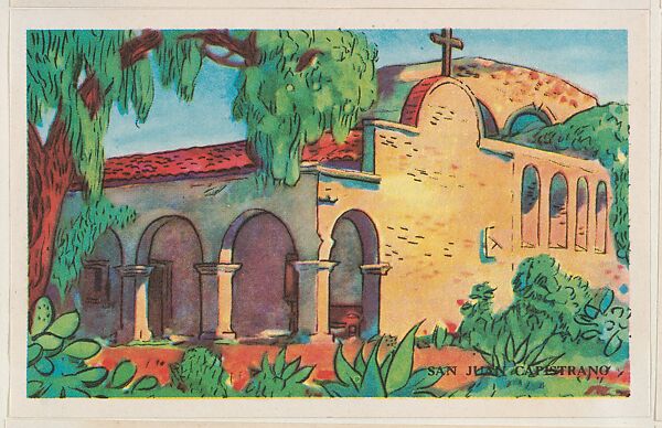 San Juan Capistrano, bakery card from the Missions series (D39-6), issued by the Gordon Bread Company as a set of 24 cards and distributed in loaves of Gordon's Finest Bread. (Album 307, page 74)