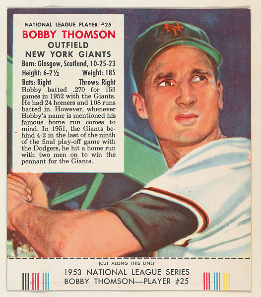 - Title: Bobby Thomson, from the Red Man All-Star Team series (T233), issued by Red Man Chewing Tobacco