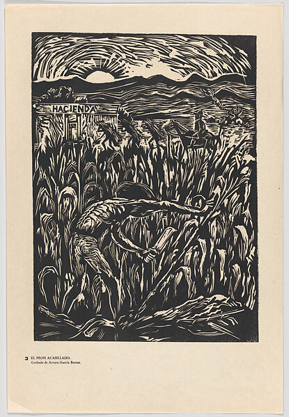 - Title: Plate 3: an indentured slave (peon acasillado) cutting maize, from "Estampas de la Revolución Mexicana" (Prints of the Mexican Revolution)