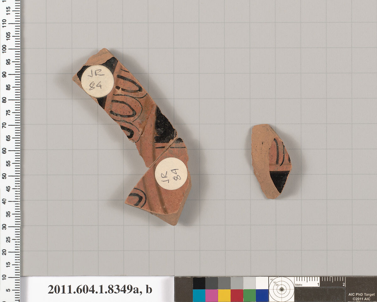 - Title: Terracotta fragments of a kylix (drinking cup)