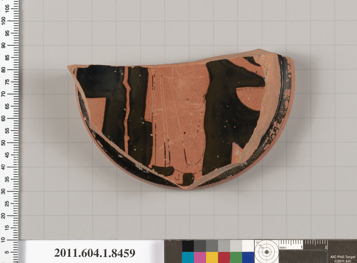 - Title: Terracotta fragment of a stemless kylix (drinking cup)