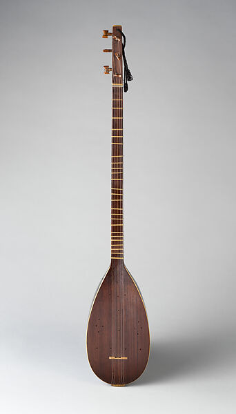 This work of art is currently on loan to the museum.The invention of this five-string tanbūr allowed Elahi to synthesize the instrument’s sacred repertoire with that of classical Persian music. It has a slightly larger body and neck. The first two rows of strings reproduce the configuration of the tanbūr, while the other two strings—one in unison with the high pitch, the other with the low octave—are like that of the setār.