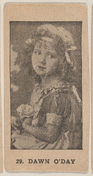 Dawn O'Day (Anne Shirley), strip card (W511). Front: photolithograph with border. Back is blank. Issued in strips with no other product. This photographic issue includes athletes, celebrities, and actors.