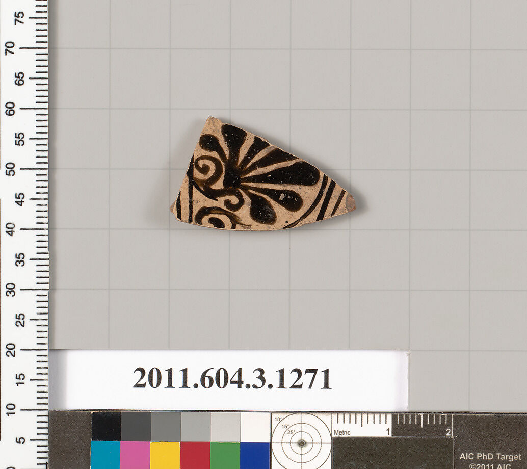 Part of a circumscribed palmette framed by black glazed lines
