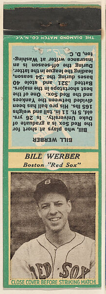 - Title: Bill Werber, Boston Red Sox, from the Baseball Players Match Cover design series (U3) issued by Diamond Match Company