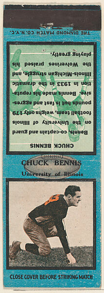 - Title: Chuck Bennis, University of Illinois, from the Football Players Match Cover design series (U6) issued by Diamond Match Company