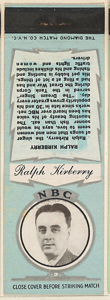 - Title: Ralph Kirberry from NBC Radio Stars Match Cover design series (U23) issued by Diamond Match Company