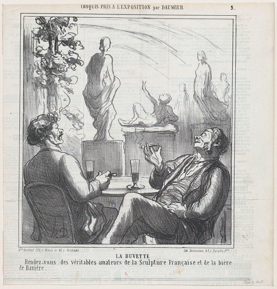 - Title: At the bar, meeting point for the true lovers of French sculpture and Bavarian beer, from 'Exhibition sketches,' published in Le Charivari, June 3, 1865