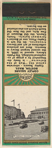 - Title: Copley Square, Boston from New England, Souvenir Views Match Cover series (U40.7)
