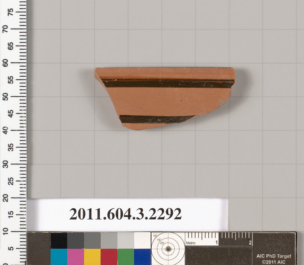 - Title: Terracotta rim fragment of a kylix: eye-cup (drinking cup)