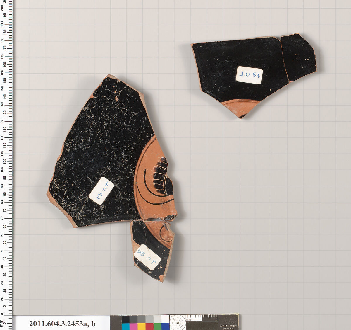- Title: Terracotta fragments of a kylix (drinking cup)