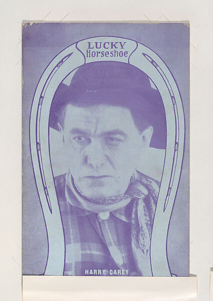 From 1929 Western Cowboys Exhibits Novelty Star Designs (W435). Distributed by Exhibit Supply Company. Dispensed in arcade machines. Postcard-sized thick card. One color. Double-sided. Reverse has corner coupon. One side is LUCKY Horseshoe with western star's picture -- the other a movie scene with different western star. Across bottom: ©1929 Ex. Sup. Co. Chgo. Made in U.S.A.