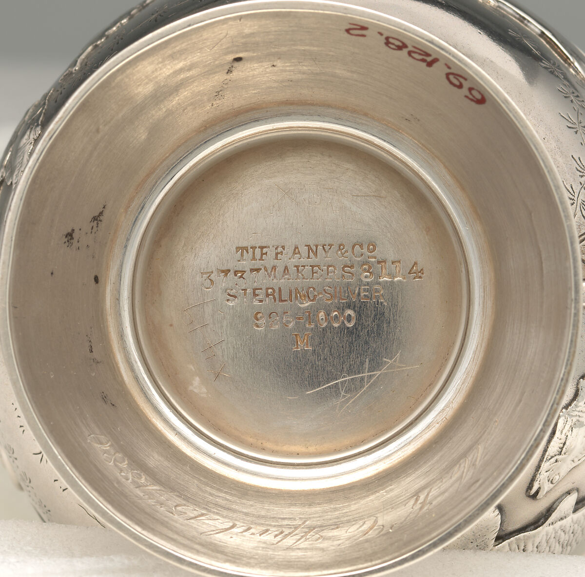 The opening of Japan to the West in the 1850s and subsequent displays of Japanese art at world’s fairs inspired great demand for Japanese-style objects in the United States. Edward C. Moore, the director of Tiffany’s silver department, was an early proponent and collector of Japanese art. Although largely inspired by Japanese art, this sugar bowl and matching creamer demonstrate that Tiffany's designers looked to a variety of sources when creating innovative designs. Indeed, manufacturing ledgers describe these vessels as having "Persian Pierced Handles." The silver workshop supervisor, Charles Gosjean, recorded in his diary that he visited the city's aquarium and also purchased fish from the Fulton Market, which he then had a colleague sketch. This dedication to close observation resulted in the highly accurate depictions of sunfish, pickerel, and yellow perch seen here.