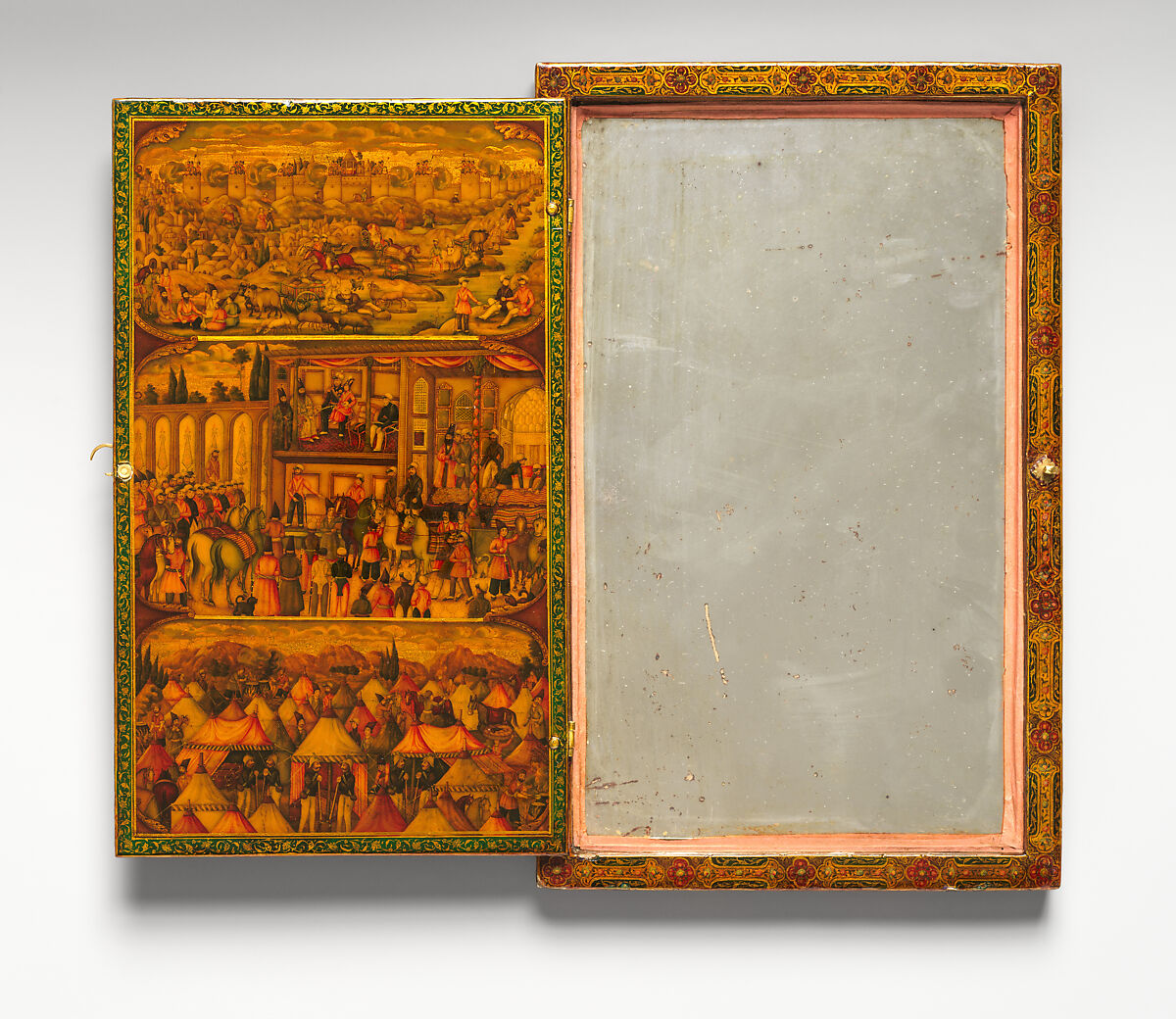- Title: Mirror Case Depicting the Meeting of Nasir al-Din Mirza and Tsar Nicholas I in Erivan and Satin Pouch