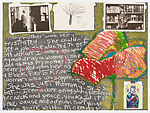 Sánchez’s mother appears frequently in his work. Here, she is shown in a photograph such as one that might be found in a scrapbook; to the right is a drawing by her and an image of a botánica doll similar to those she made. Sánchez writes a tribute to his mother below, describing the difficulties she encountered in Brooklyn after immigrating from Puerto Rico as a result of economic, racial, and cultural oppression. He also describes her strength and the comfort she provided him when he was young. In addition to symbolizing his love, the red heart in the center evokes childhood drawings, while a devotional card with the Madonna and child testifies to both his mother’s Catholic faith and profound maternal affection.