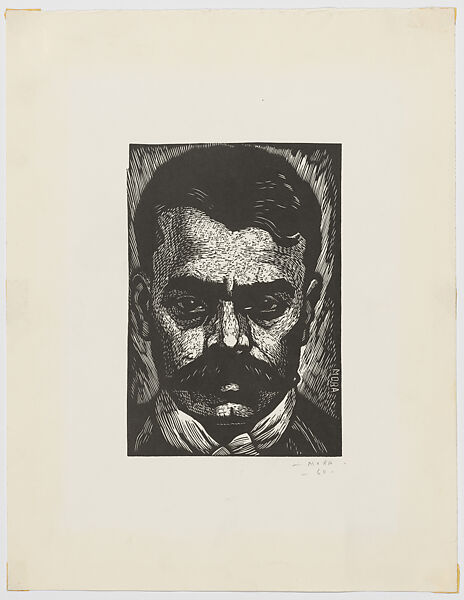 In this portrait, created in 1960, Zapata fills the entire sheet and gazes directly at the viewer with a confronting expression that reflects his commitment and determination. Long after his death, in 1919, Zapata’s reputation as a revolutionary hero inspired artists and activists across Mexico.