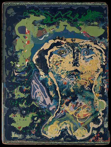 Working from England, and known for her paintings, objects, and photographs, Agar was associated with Surrealism although she remained apart from the political aspects of the movement. Her work was particularly influenced by automatism, a method of accessing the unconscious mind as part of the creative process. After World War II suspended much of her artmaking, Agar returned to Surrealist experimentation to refresh her thinking. Some of her most striking uses of automatism can be found in a small group of poured paintings in which she used pigments to create portraits in loose outlines, fluid drips, and swirling backgrounds. The lyrical Untitled Self-Portrait is a remarkable example that toggles between abstraction and figuration.