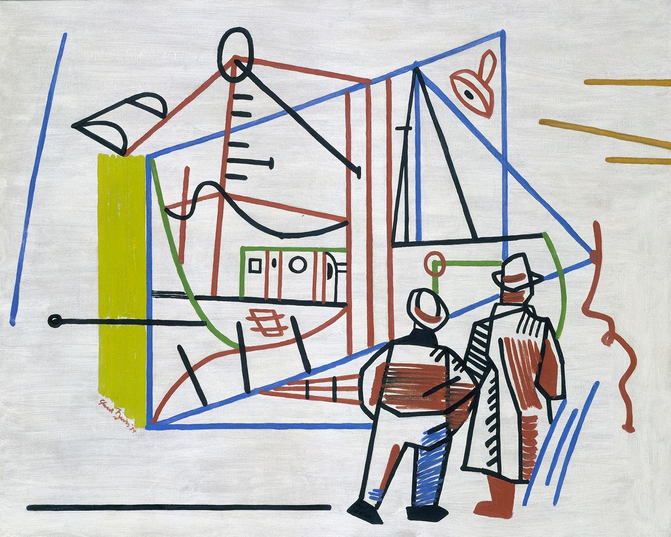 Stuart Davis (American, 1892–1964). Men and Machine, 1934. Oil on canvas, 32 × 40 in. (81.3 × 101.6 cm). The Metropolitan Museum of Art, New York, Gift of Mr. and Mrs. Jay R. Braus, 1981 (1981.406)