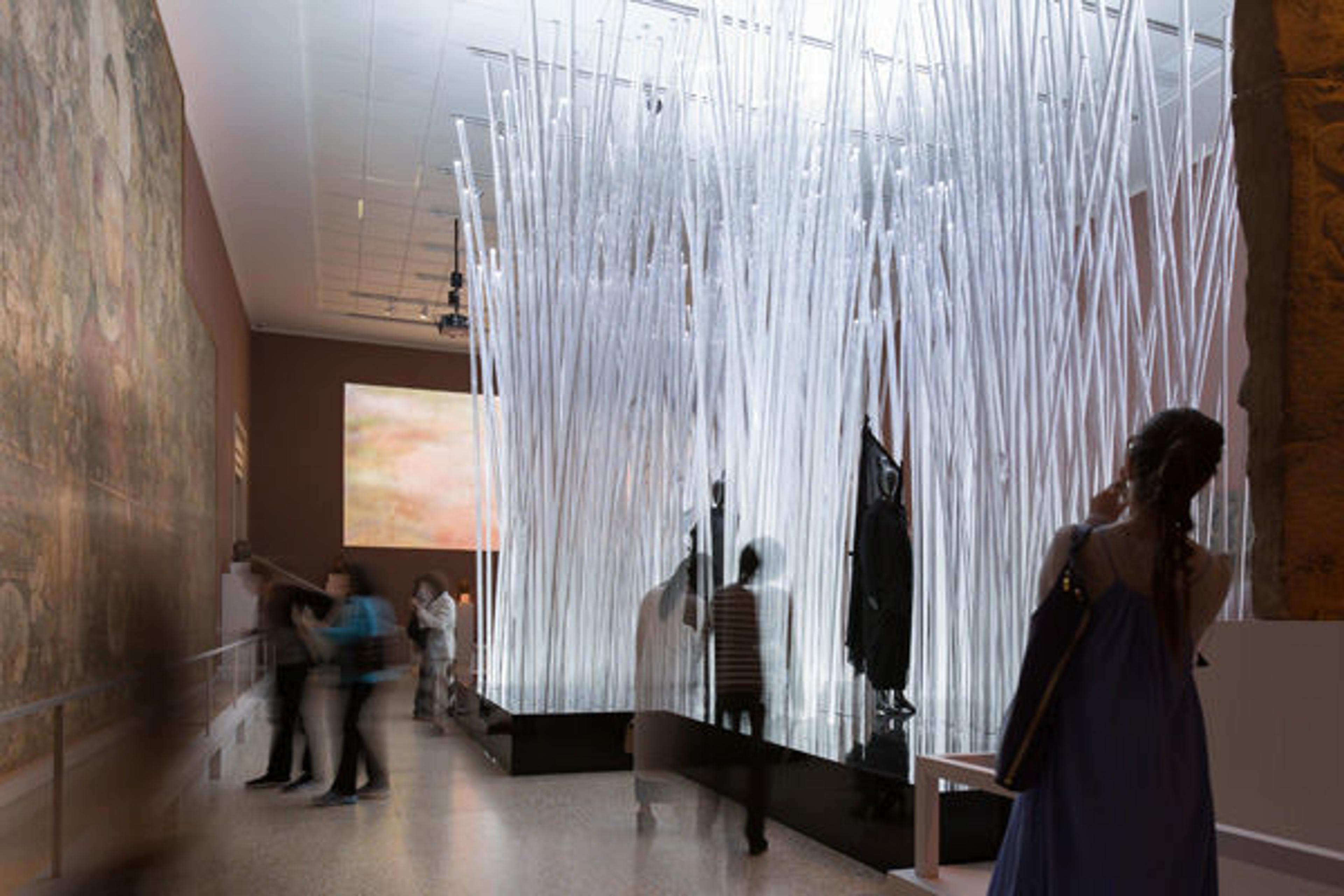 Mannequin surrounded by LED tubes, mimicking a bamboo forest in gallery 206