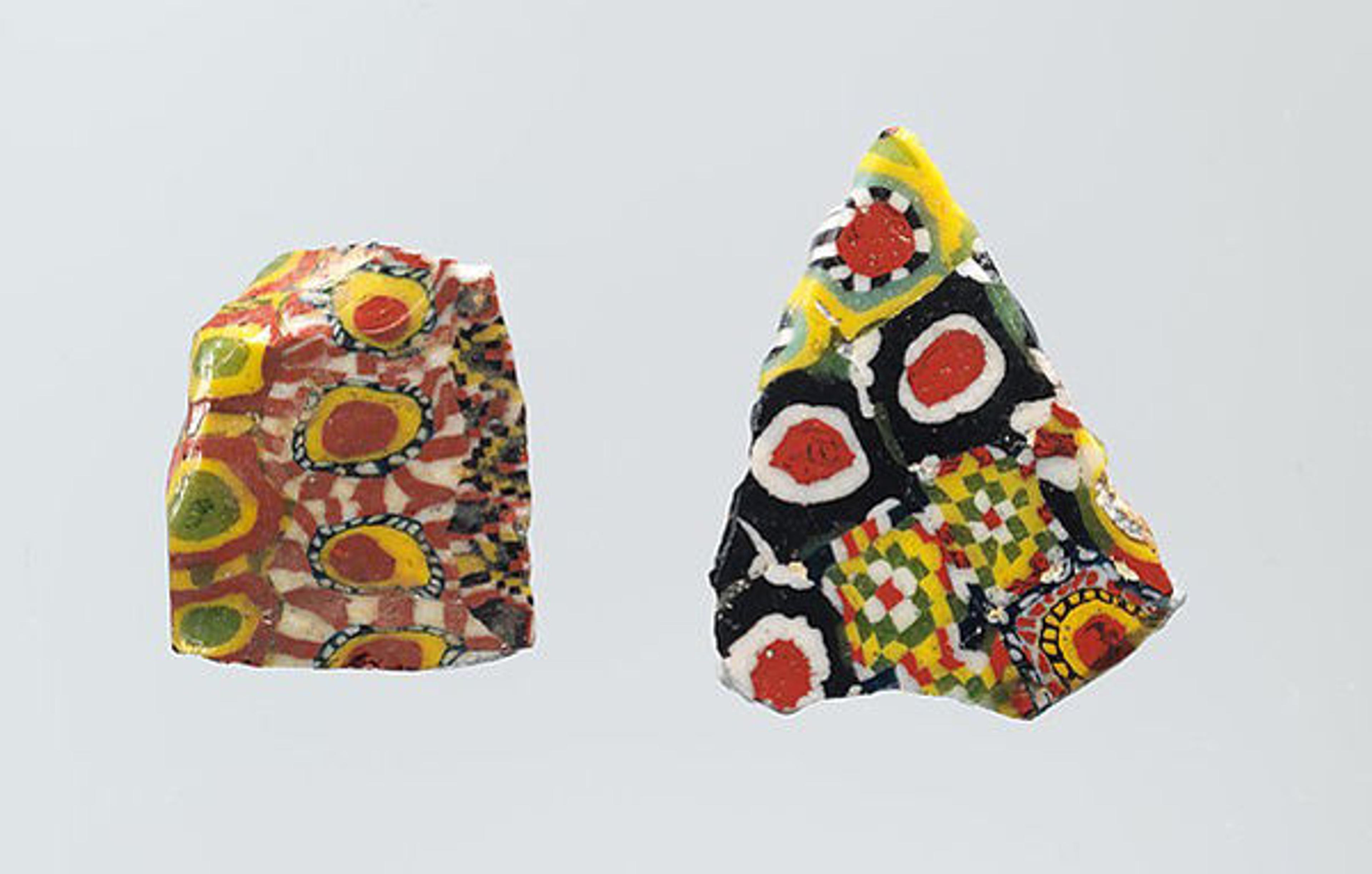 Tile fragments, 9th century. Iraq, Samarra. Islamic. Millefiori glass. The Metropolitan Museum of Art, New York, Rogers Fund, 1923 (23.75.15a, b)