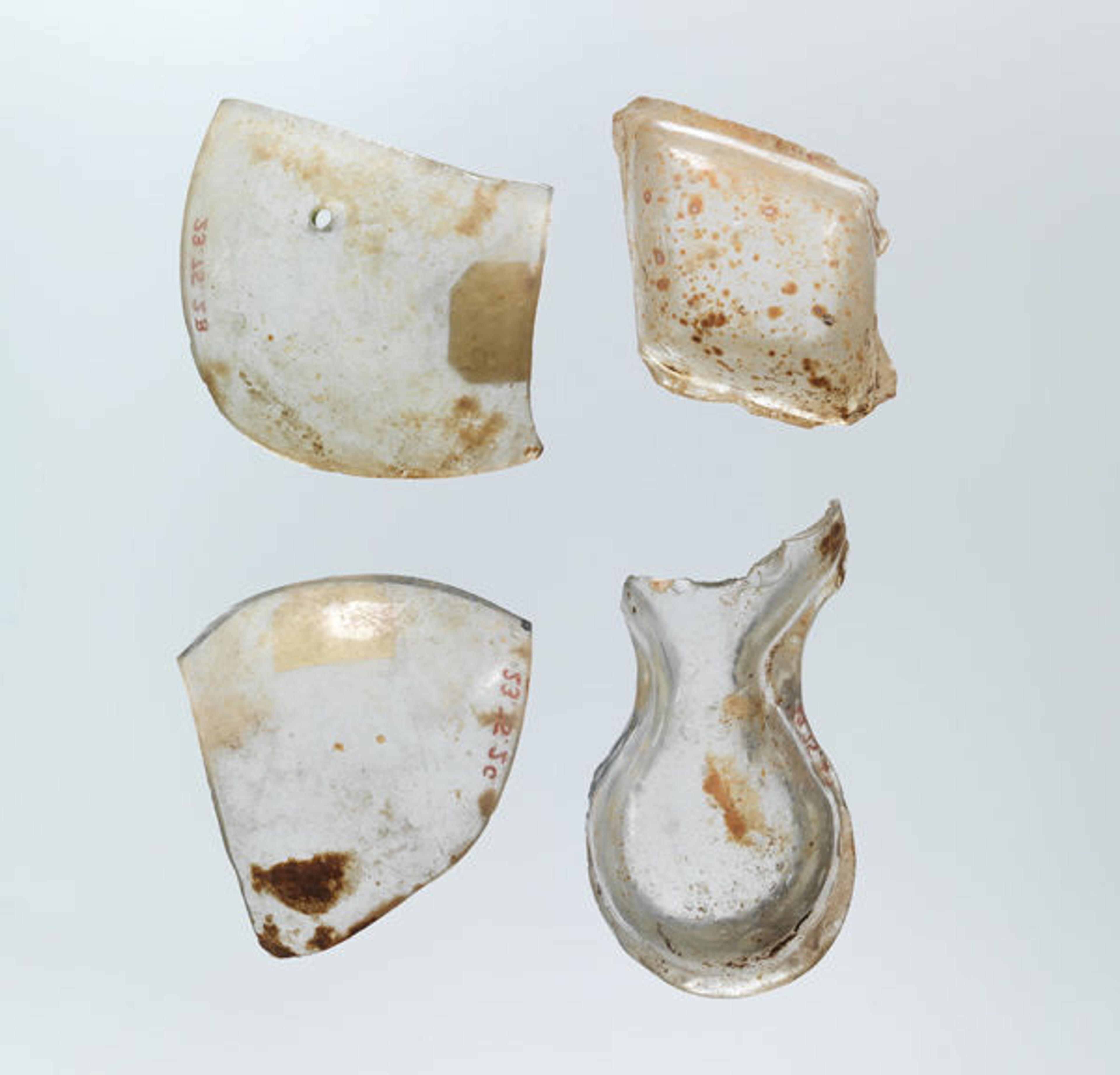 Shaped glass inlay pieces, 9th century. Iraq, Samarra. Islamic. Glass; mold blown and tooled. The Metropolitan Museum of Art, New York, Rogers Fund, 1923 (23.75.2a–d)