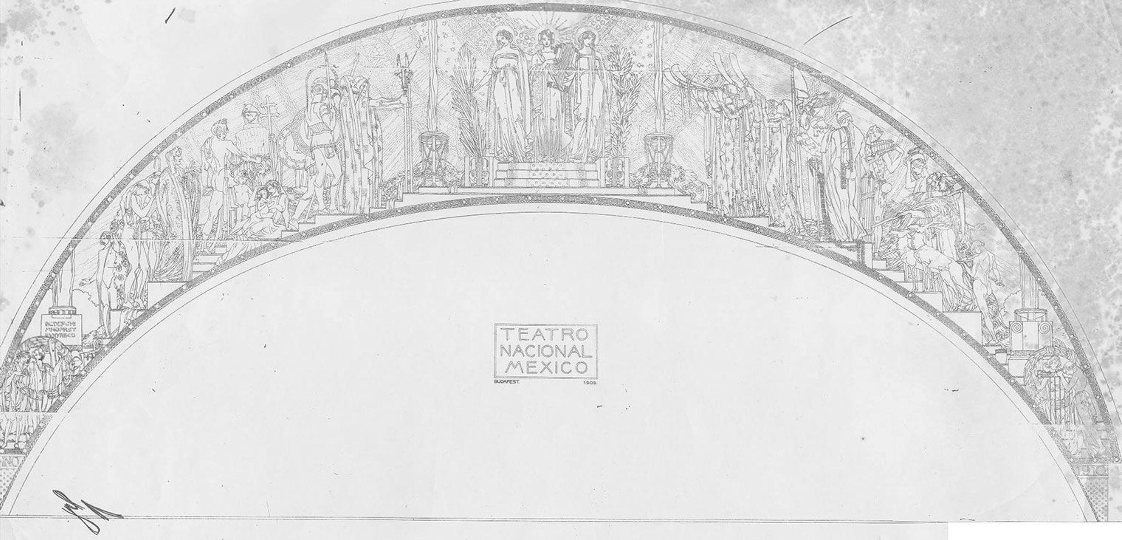 Final design for the proscenium's mural arc, 1908. Géza Maróti. Image courtesy of DACPAI - INBA.