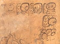 The text is written in Mayan hieroglyphs, which were both pictorial and phonetic. Glyphs on this plate identify important gods, dates, events, and people.