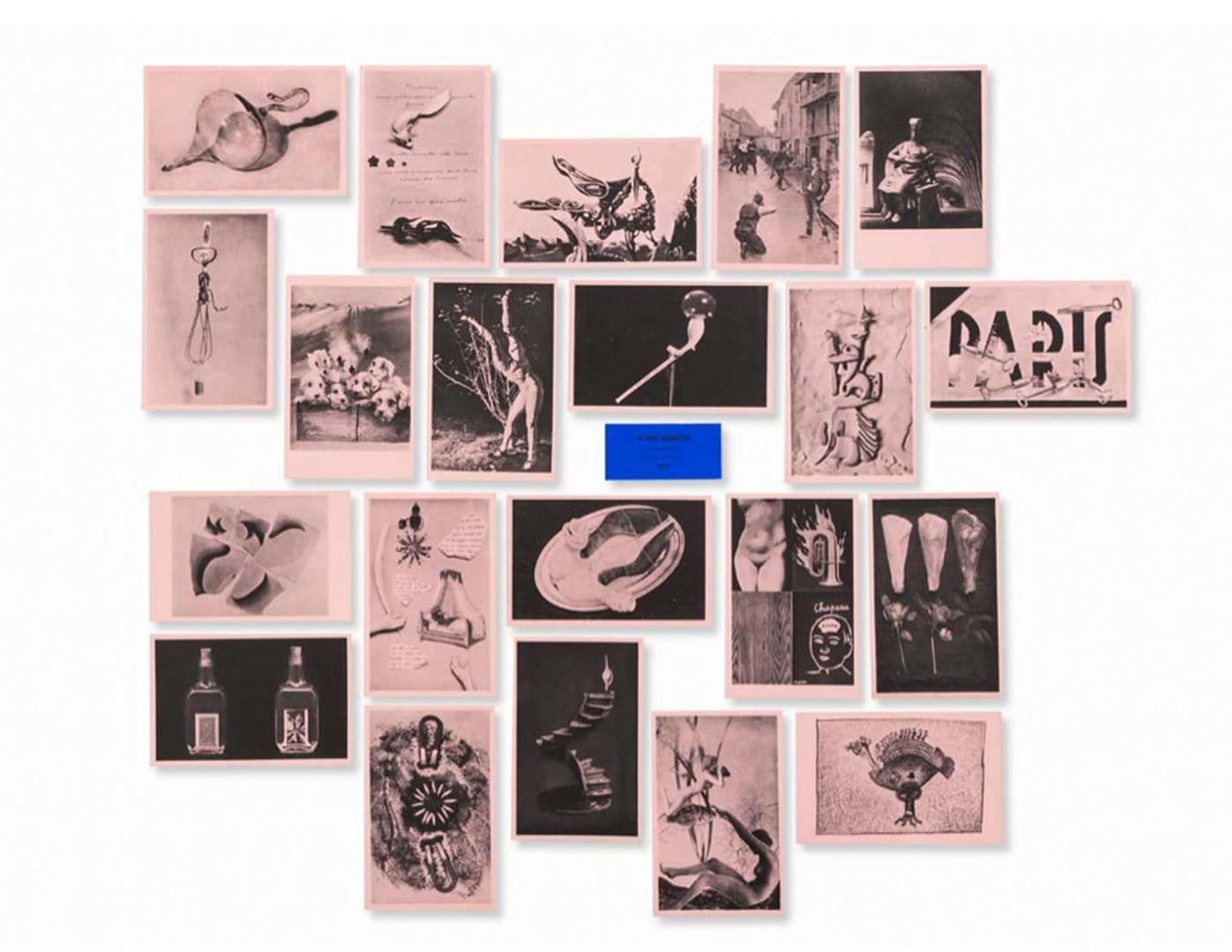 George Hugnet, an innovative and active promoter of Surrealism, published La Carte Surréaliste (First Series) in 1937. Postcards were an innovative method of spreading the ideas and images of Surrealism, and the ones included here illustrate previously unpublished work of artists including Jean Arp, Hans Bellmer, André and Jacqueline Breton, Salvador Dalí, Roland Penrose, Pablo Picasso, Man Ray, and Yves Tanguy. The total edition was six sets of sixty postcards printed on different paper colors. Our set is on pink woven paper and retains the original blue title label. A year before the publication of the Surrealist postcards, Hugnet contributed two essays to the catalogue of Fantastic Art Dada and Surrealism, organized by Alfred Barr at the Museum of Modern Art. Hugnet broke with Breton in 1938 and concluded his work as a promoter of Surrealism.