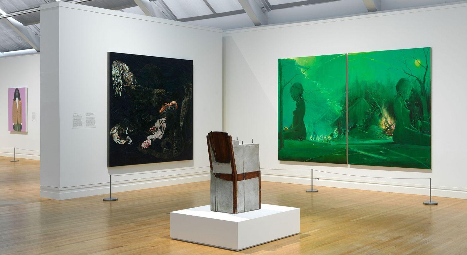 On a quiet afternoon, in the middle of a large, white gallery whose ceiling full of skylights throws a checkerboard pattern of sun and shadows across the floor… there, surrounded by colorful landscapes and portraits sits an inauspicious sculpture.