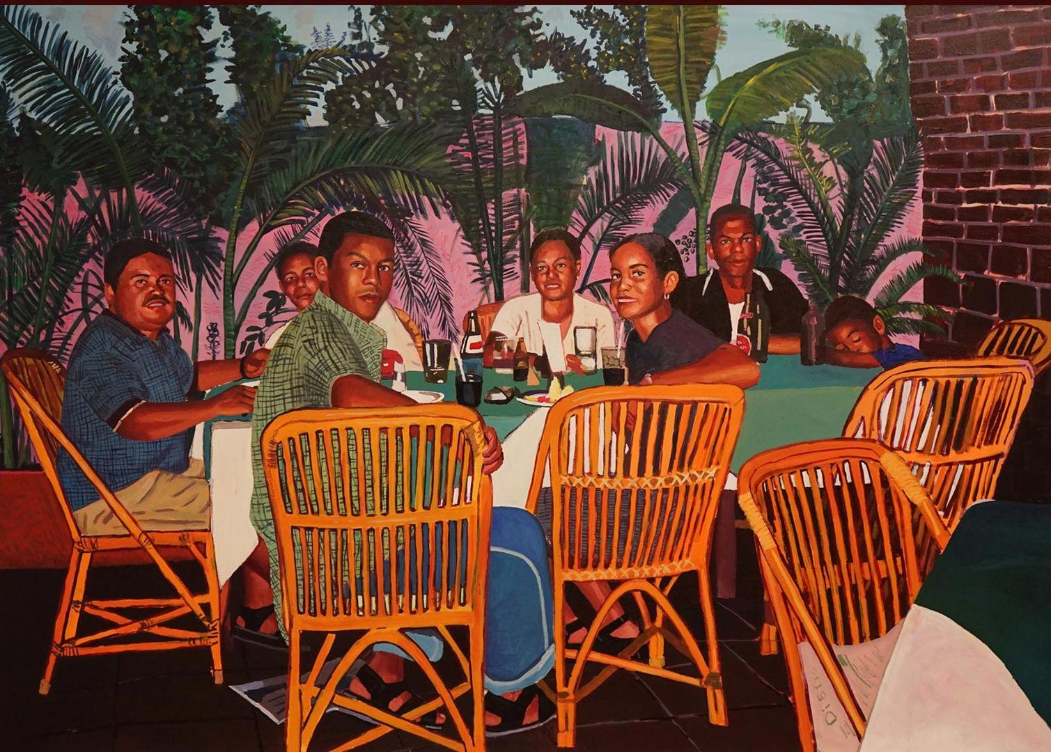 Raelis Vasquez. La Mesa Nuestra, 2021. Oil, acrylic, and oil pastels on canvas, 60 x 84 in. © Raelis Vasquez. Courtesy Raelis Vasquez
