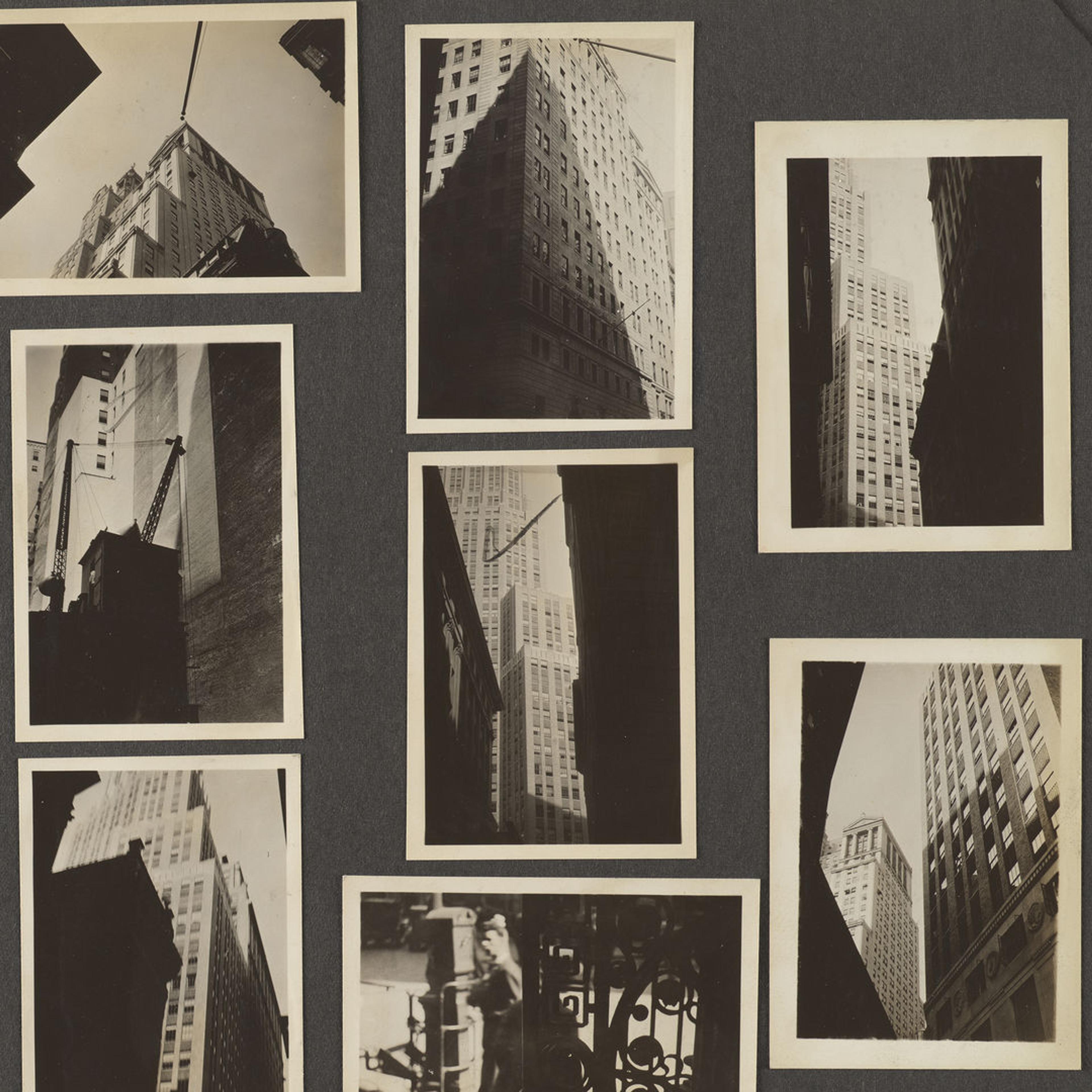 When the American photographer Berenice Abbott (1898–1991) returned to the United States in January 1929 after eight years in Europe, she was seized by a “fantastic passion” to photograph New York. Abbott wandered the city with a small handheld camera, photographing bridges, billboards, newly erected skyscrapers, elevated trains, and neighborhood street life. She then pasted these “notes,” as she called them, into a standard black-page album, arranging them by subject and general locale. Consisting of 266 photographs across thirty-two pages, Abbott’s New York album offers an intimate view of the city at a moment of great cultural and urban transformation.