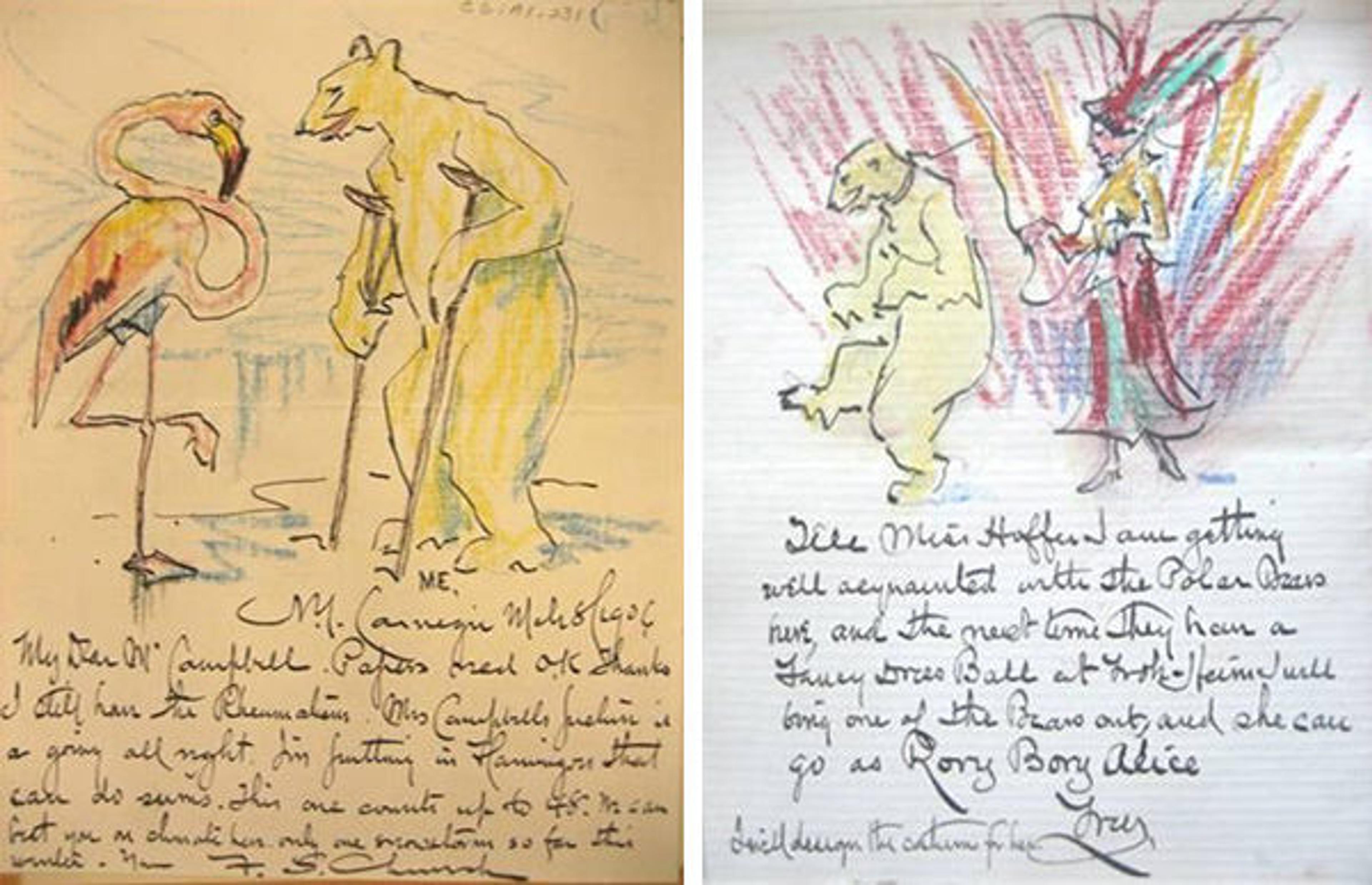Hobler was kind enough to send over two other similarly charming letters, both of which feature the polar bear, and one that reunites both polar bear and flamingo.