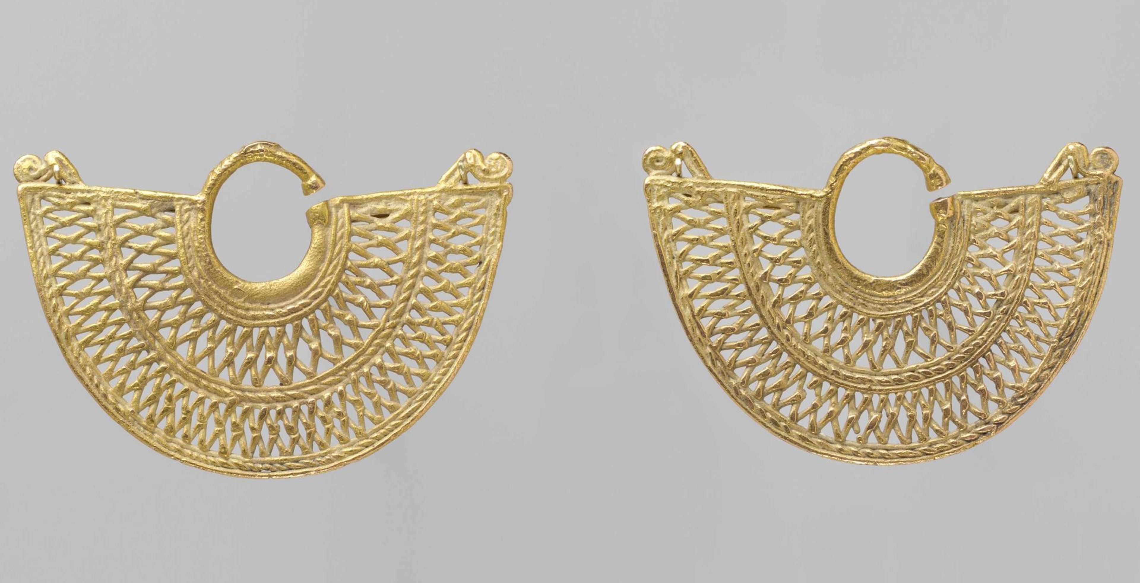 Ear Ornaments. Zenú, Caribbean Lowlands (Colombia). Gold, 1 1/2 × 2 3/16 in. (3.8 × 5.6 cm). The Metropolitan Museum of Art, New York, Gift and Bequest of Alice K. Bache, 1974, 1977 (1974.271.59)
