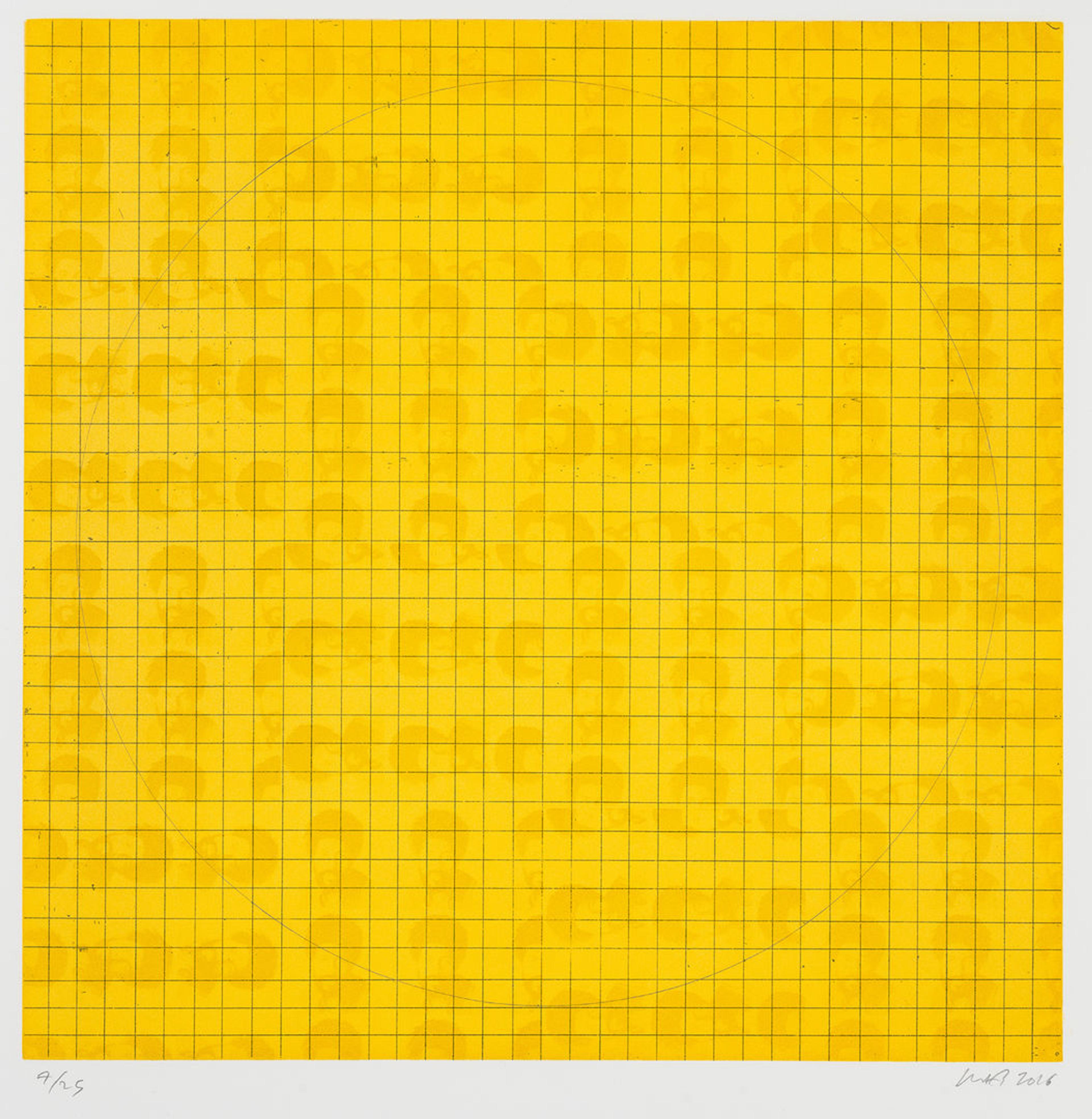McArthur Binion (American, born 1946). MAB: (Etching II) 1971 Yellow, 2016. Color aquatint with hardground etching, 22 1/2 in. × 22 in. (57.2 × 55.9 cm). The Metropolitan Museum of Art, New York, John B. Turner Fund, 2022 (2022.403).