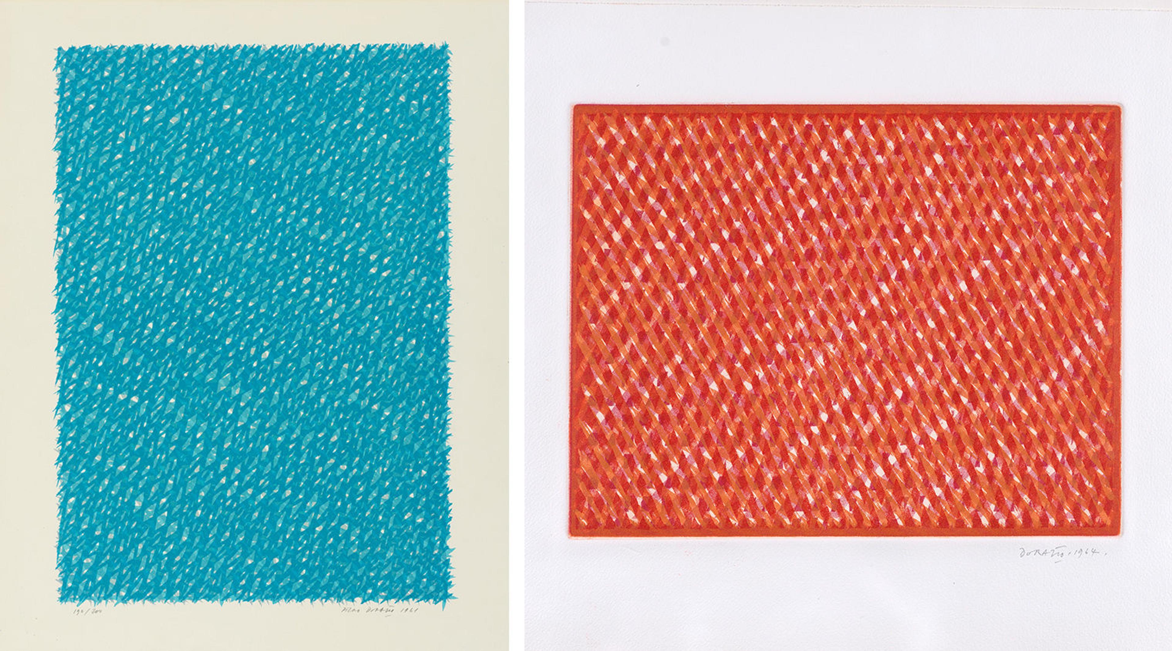 Left: Piero Dorazio (Italian, 1927–2005). Lithograph #13, 1961. Lithograph, 27 3/8 × 20 7/8 in. (69.5 × 53 cm). The Metropolitan Museum of Art, New York, The Elisha Whittelsey Collection, Gift of Thomas M. Folds, 1966 (66.752). © 2023 Artists Rights Society (ARS), New York. Right: Piero Dorazio (Italian, 1927–2005). j n d (Just Noticeable Difference), 1964. Color aquatint, 13 5/8 × 18 9/16 in. (34.6 × 47.1 cm). The Metropolitan Museum of Art, New York, The Elisha Whittelsey Collection, The Elisha Whittelsey Fund, 1965 (65.599). © 2023 Artists Rights Society (ARS), New York