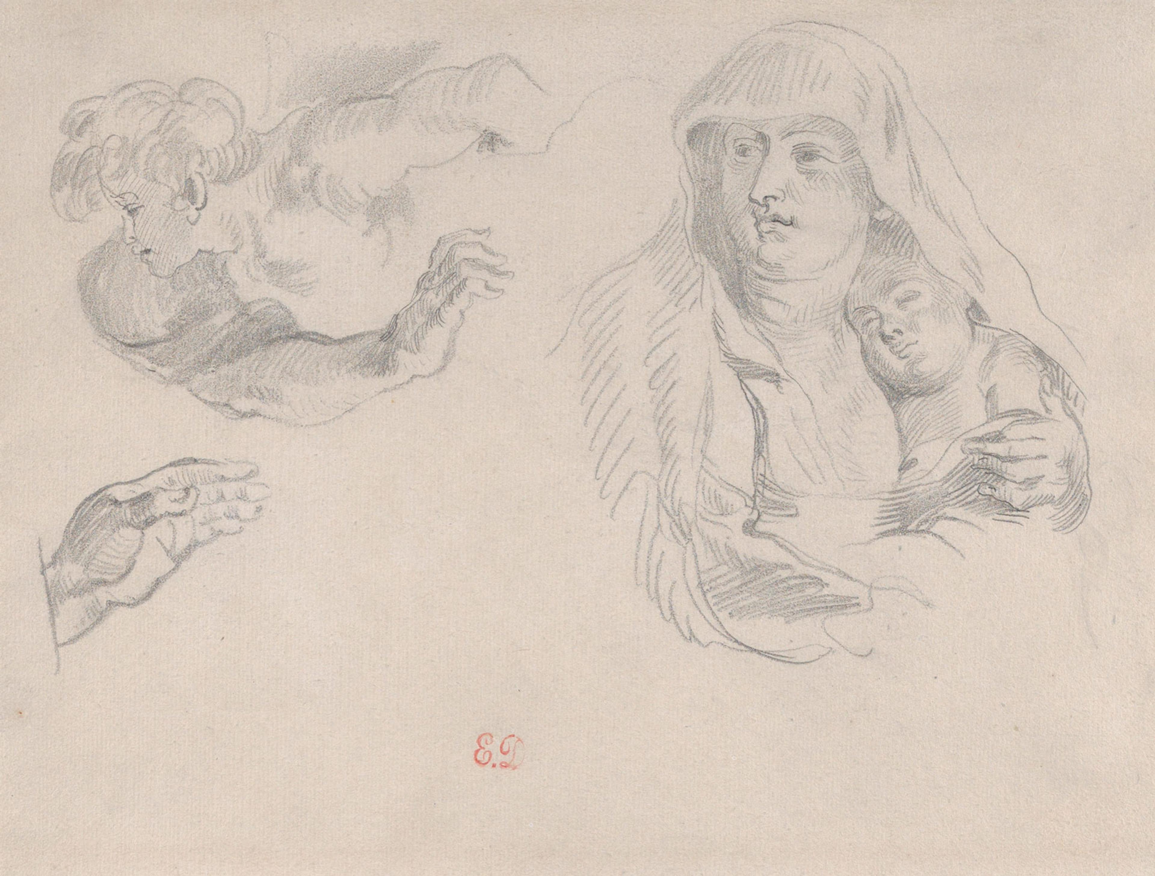 Eugène Delacroix (French, 1798–1863). Studies after Rubens's The Flight into Egypt, ca. 1830. Graphite, 6 1/2 x 8 3/4 in. (16.5 x 22.2 cm). Promised Gift from the Karen B. Cohen Collection of Eugène Delacroix, in honor of Patricia Reddington Harvey