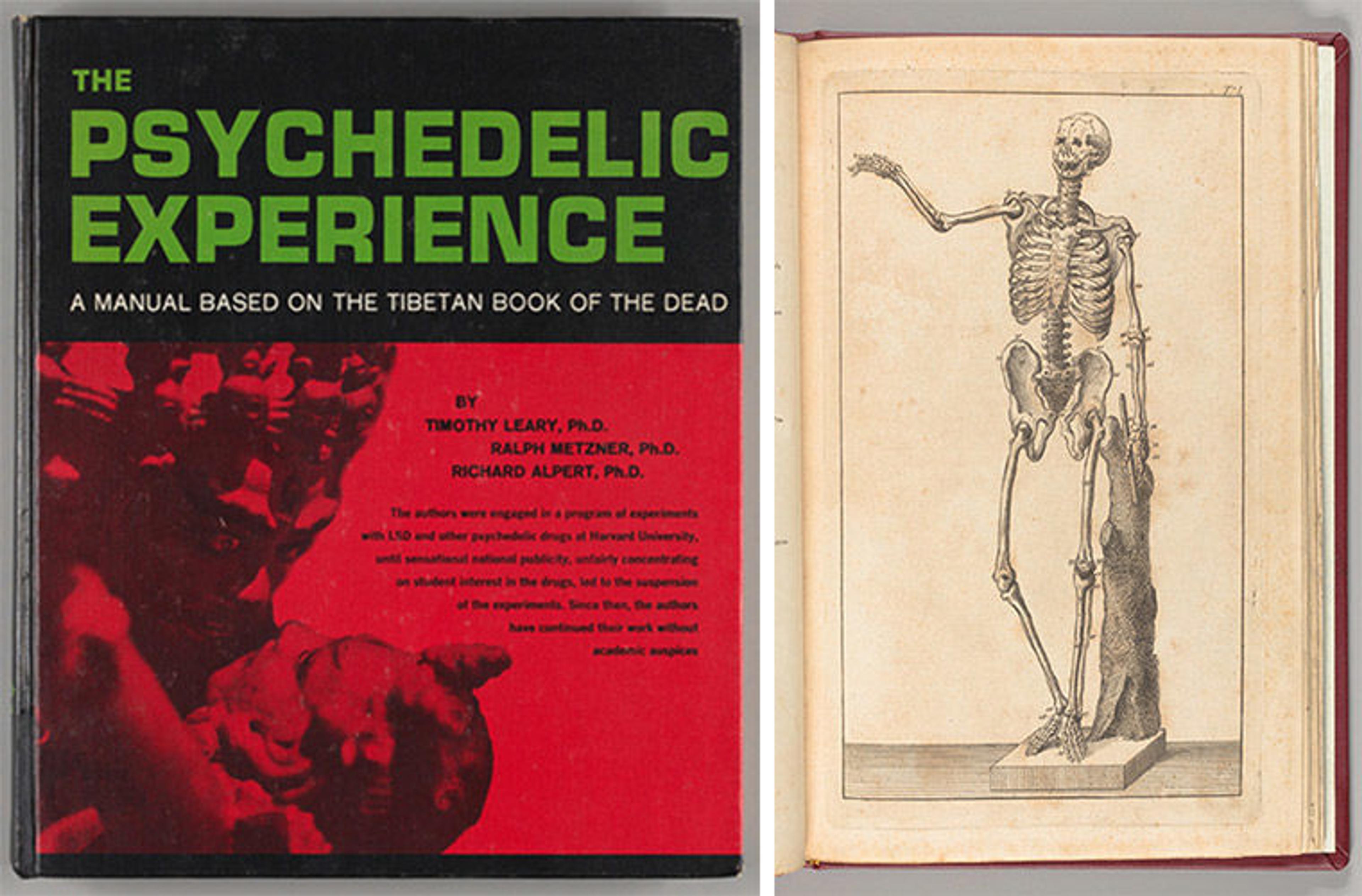 Left: Timothy Leary, The Psychedelic Experience: A Manual Based on the Tibetan Book of the Dead(New York: University Books, 1972). Right: Francesco Carradori, Istruzione elementare per gli studiosi della scultura(Pisa: Impresso nella tipografia della Società letteraria, 1802).