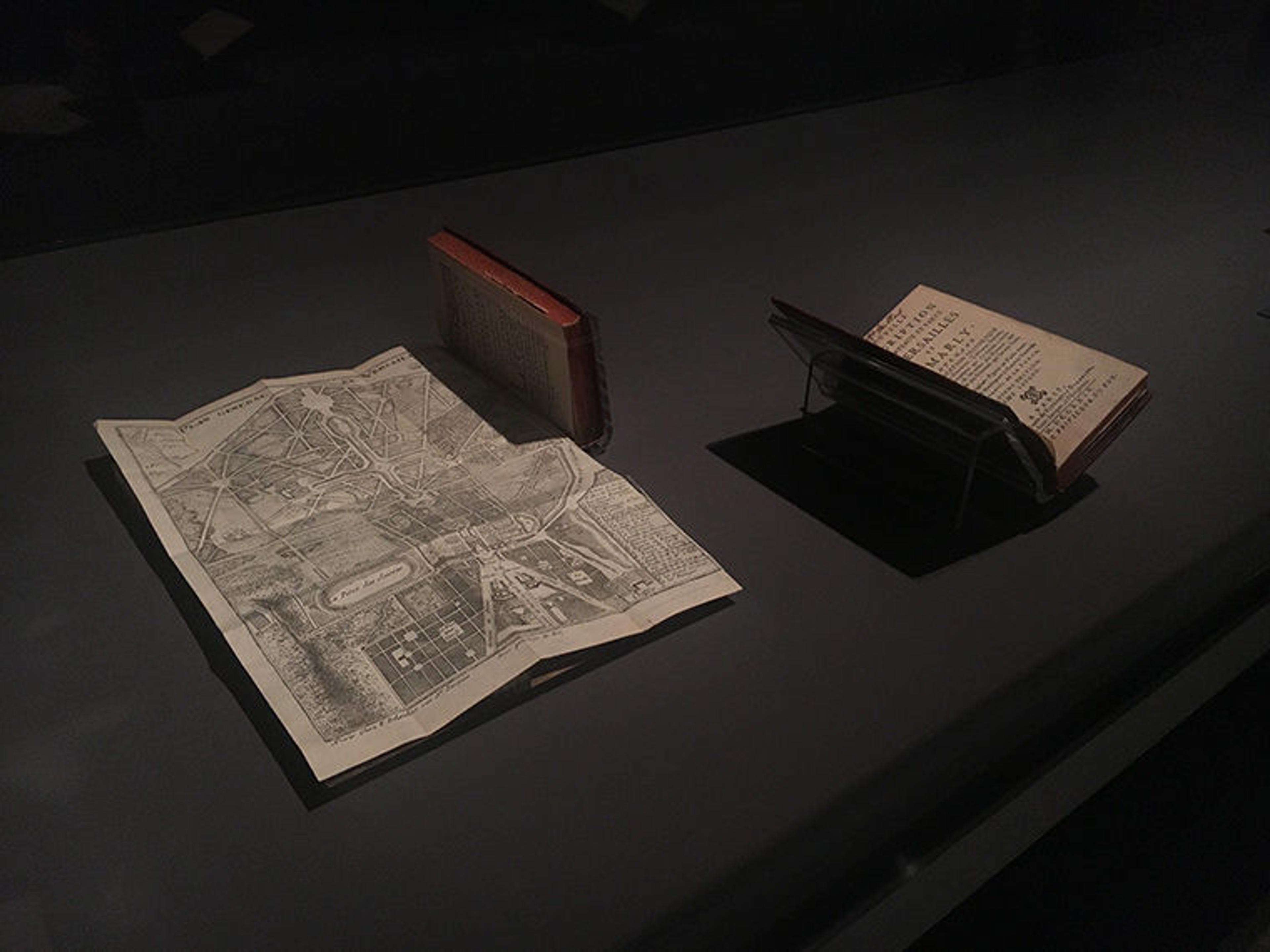 Several eighteenth-century Watson volumes, such as Nouvelle Description des Chateaux et Parcs de Versailles et de Marly, above, are installed in the current exhibition Visitors to Versailles (1682-1789). These books, some of which include foldout maps, served as travel guides for visitors to the palace and its gardens.