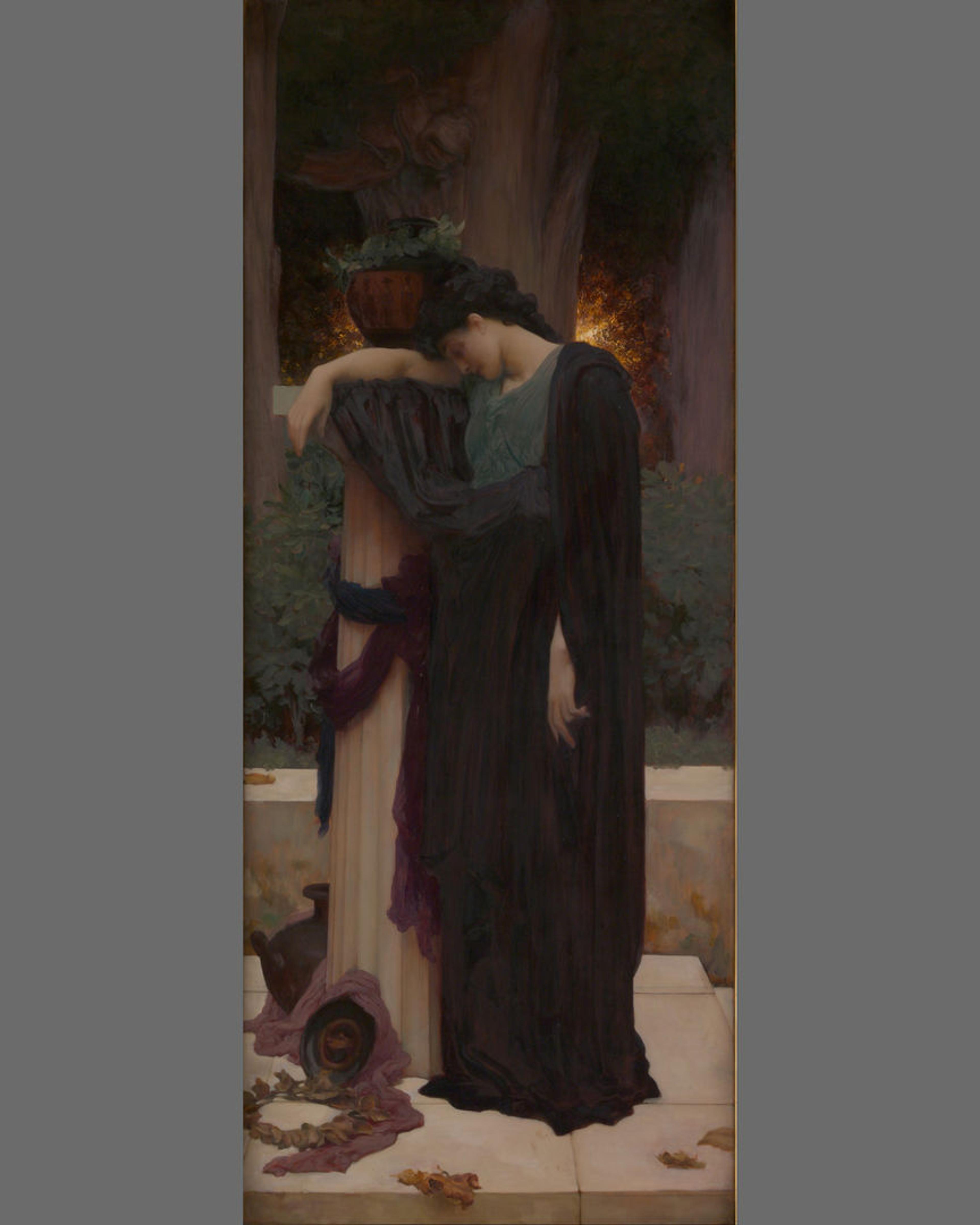 Frederic, Lord Leighton (British, 1830–96). Lachrymae, 1894–95. Oil on canvas, 62 x 24 3/4 in. (157.5 x 62.9 cm). The Metropolitan Museum of Art, New York, Catharine Lorillard Wolfe Collection, Wolfe Fund, 1896 (96.28)