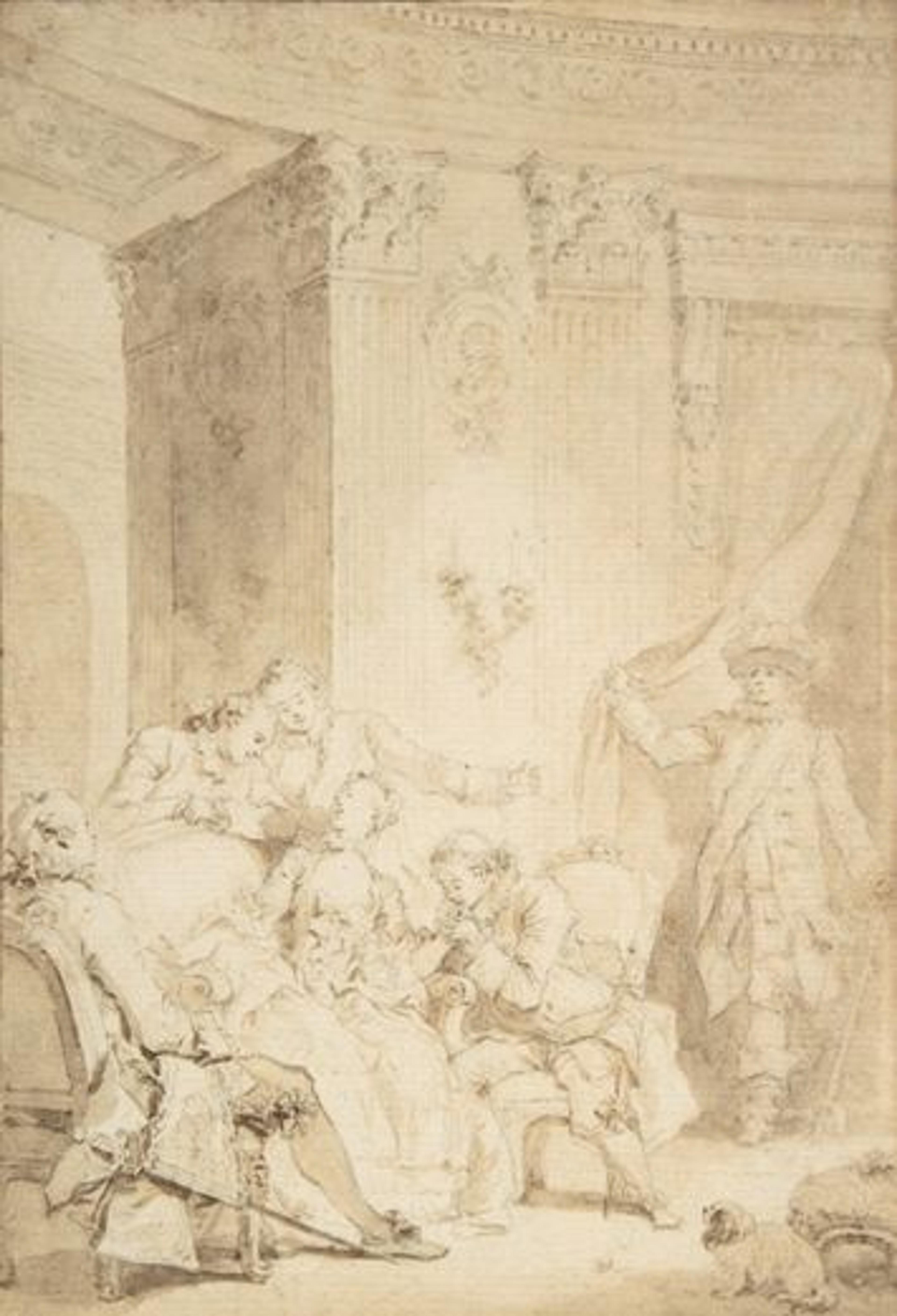 Depictions of the leisure class like this one became unpopular during the French Revolution. Right: Jean Honoré Fragonard (French, 1732–1806). The Husband-Confessor, ca. 1770. Brown wash over light black chalk underdrawing, 8 1/8 x 5 9/16 in. (20.6 x 14.1 cm). The Metropolitan Museum of Art, New York, The Lesley and Emma Sheafer Collection, Bequest of Emma A. Sheafer, 1973 (1974.356.44)