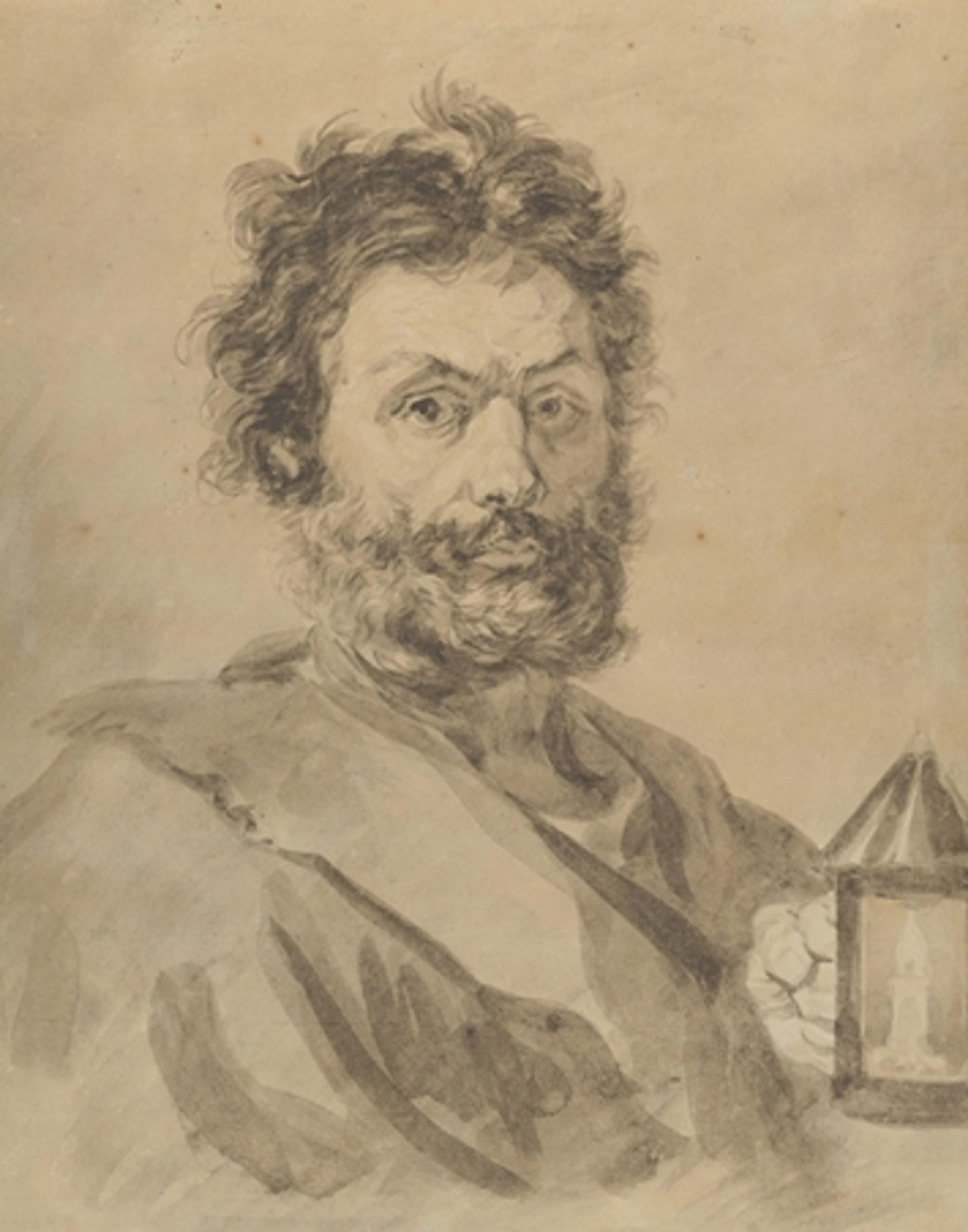 One canvas that particularly caught the artist's eye was Jusepe de Ribera's bust-length portrayal of the Cynic philosopher Diogenes (d. 323 B.C.) (fig. 4). In the Spanish painter's haunting work, Diogenes, who sought to escape the corruption of civilization, is depicted with a full beard and wrapped in a dark mantle. He grasps his lantern, an attribute that alludes to his search, in broad daylight, for an honest man in the marketplace.