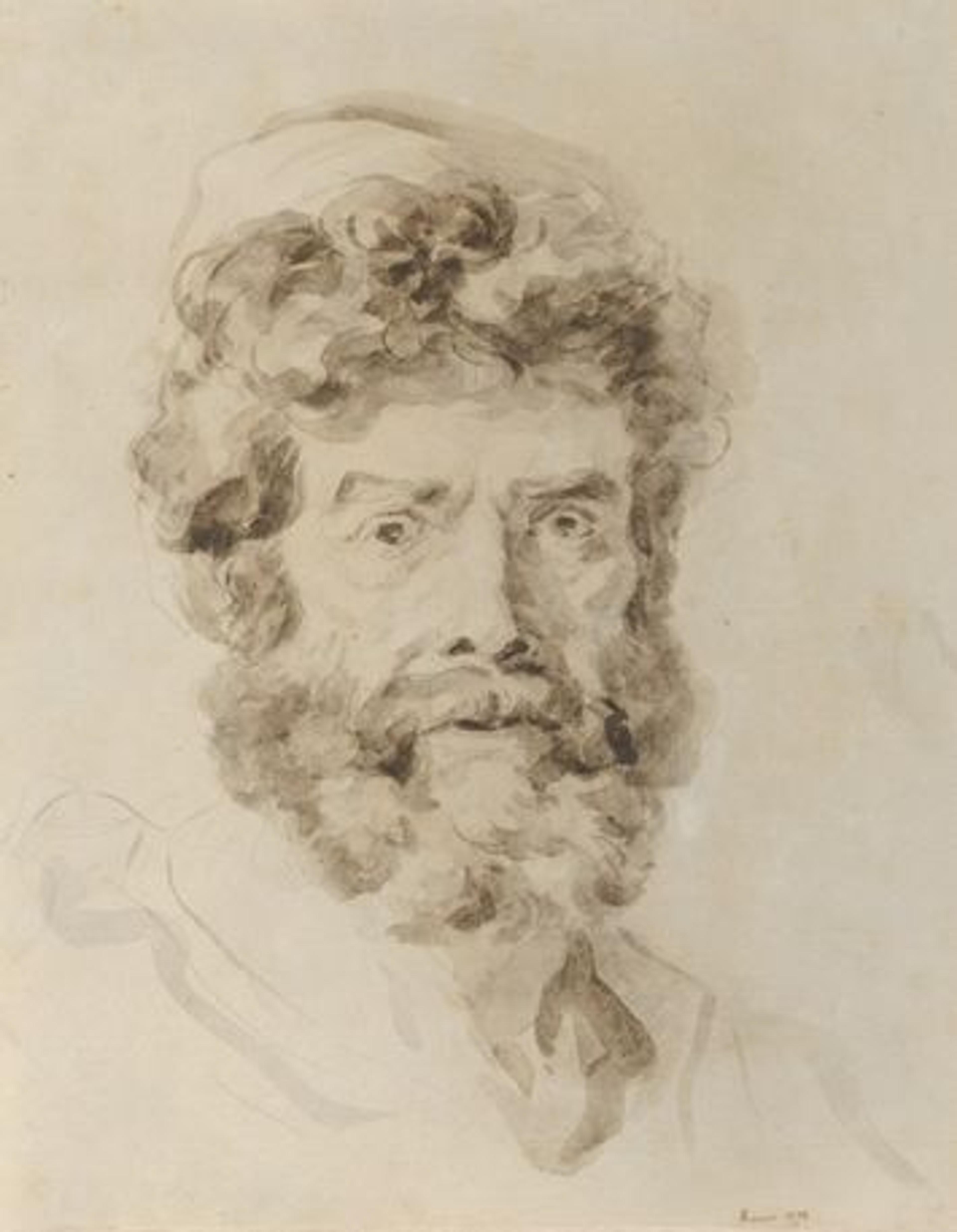 «Two drawings hang side by side in the middle gallery of the exhibition Fragonard: Drawing Triumphant—Works from New York Collections. Their subjects, bearded men with dark, curly hair, bear an uncanny resemblance to one another. Both depict their sitter in three-quarter view, directing a penetrating gaze toward the viewer. Both were executed in brush and brown wash, with the artist first laying down areas of pale golden-brown wash to describe the weathered topography of the man's face, followed by progressively darker touches to accentuate the features and dark hair.»