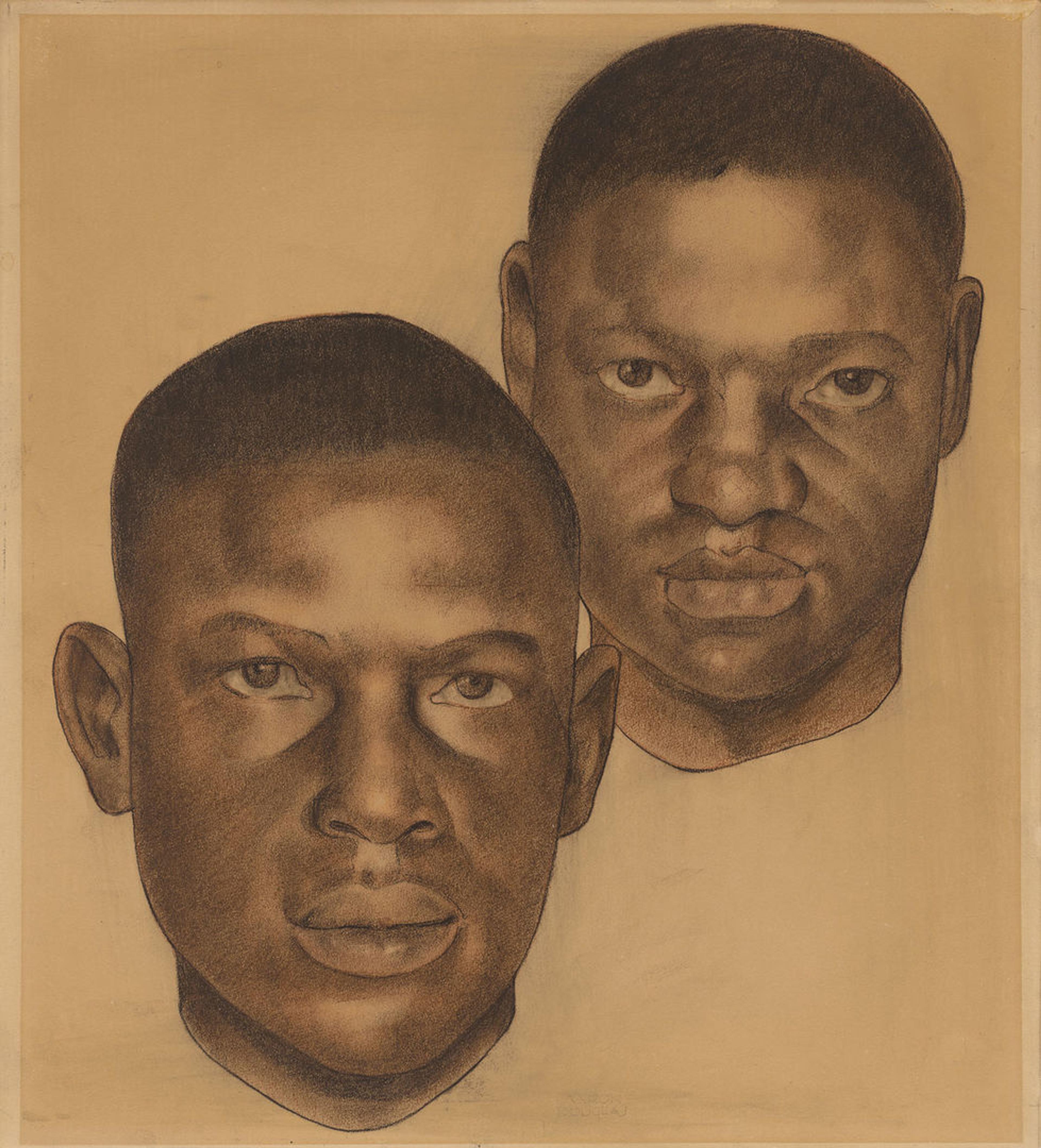 Aaron Douglas (American, 1899– 1979), Scottsboro Boys, ca. 1935. Pastel, 16 1/8 x 14 5/8 in. (41 x 37.1 cm). National Portrait Gallery, Smithsonian Institution, Washington, D.C.; Conserved with funds from the Smithsonian Women’s Committee (2004.6)